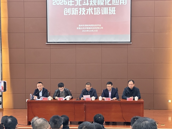 為加速北斗規(guī)?;瘧?yīng)用與測(cè)繪地理信息產(chǎn)業(yè)融合發(fā)展,10月25日,滁州市測(cè)繪地理信息學(xué)會(huì)主辦的“2025年北斗規(guī)模化應(yīng)用創(chuàng)新技術(shù)培訓(xùn)班”順利召開。本次培訓(xùn)匯聚了來自東南大學(xué)、南京信息工程大學(xué)、安徽理工大學(xué)及安徽省測(cè)繪產(chǎn)品質(zhì)量監(jiān)督檢驗(yàn)站、江蘇省地質(zhì)調(diào)查研究院、江蘇省測(cè)繪工程院等高校機(jī)構(gòu)的二十余名專家學(xué)者,共謀北斗技術(shù)創(chuàng)新與產(chǎn)業(yè)升級(jí)路徑。滁州市測(cè)繪地理信息學(xué)會(huì)會(huì)長(zhǎng)盛樹長(zhǎng)、滁州高教科創(chuàng)管理服務(wù)中心副主任吳克強(qiáng)、滁州市測(cè)繪管理處四級(jí)主任科員李言言等出席活動(dòng)。